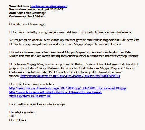 Dat Neonazi en Beroepsfantast Jan Peter Mante dezelfde is als 'Maggy Magon' wordt schriftelijk bevestigd door Olaf P. Baas: