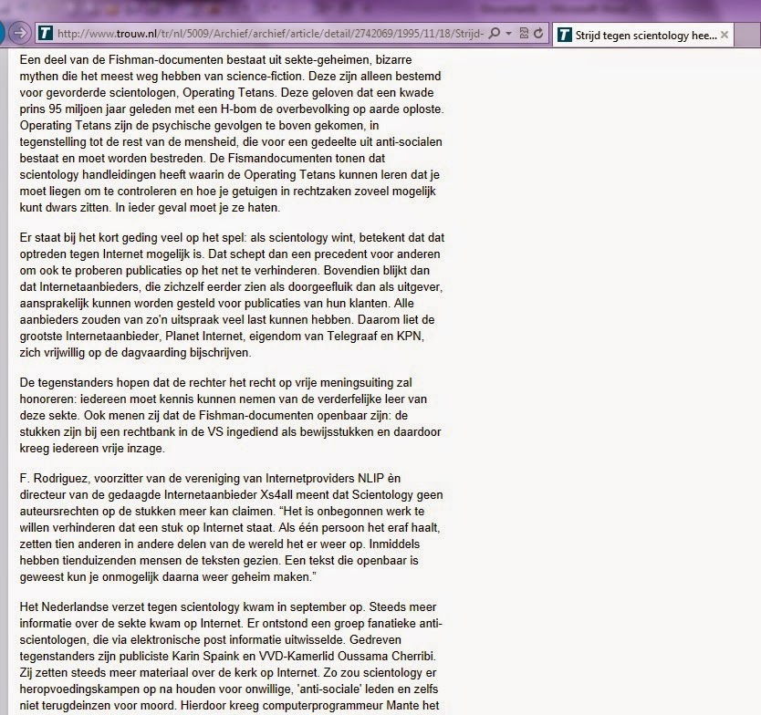 Degenen die zich de oplichtings- en chantagepraktijken van Neonazi Jan Peter Mante ten aanzien van de Scientology Church in Amsterdam zich niet meer kunnen herinneren verwijs ik bijzonder graag naar de artikelen hieronder. Heel veel leesplezier toegewenst !!!
