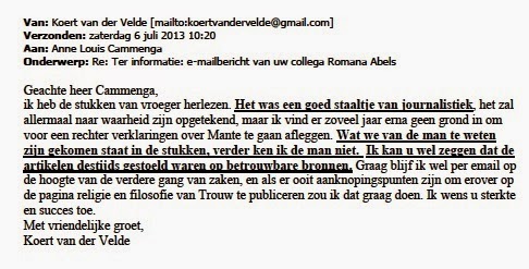 Trouw-Journalist Koert van der Velde heeft hieromtrent schriftelijk naar mij toe het volgende bevestigd: